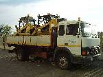 Uno dei nostri carri officina adibiti alla manutenzione sulle reti metanodotto |  Nostro automezzo ribaltabile adibito a trasporto inerte e macchine operatrici |  Nostro automezzo ribaltabile con gru' adibito a trasporto inerte,tubazioni barre 12 mt,pali illuminazione pubblica |