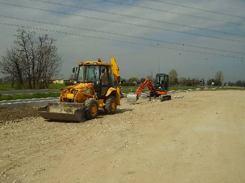 Nostre macchine operatrici adibite a scavo e reinterro in nuove urbanizzazioni |  Alcuni nostri mezzi situati nel deposito di Palazzo Pignano ( Cremona ) | |